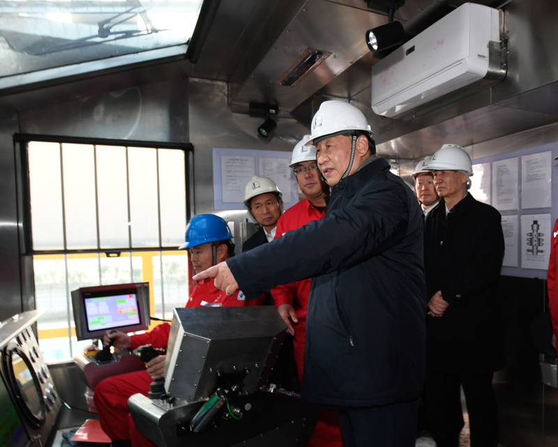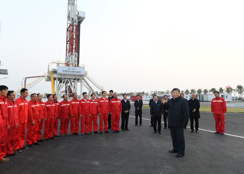 離開研究院,習(xí)近平來(lái)到位于東營(yíng)市萊州灣的勝利油田萊113區(qū)塊,了解二氧化碳捕集、利用與封存技術(shù)研發(fā)應(yīng)用情況。他登上二層鉆井平臺(tái),察看鉆井自動(dòng)化設(shè)備,走進(jìn)操作室,同正在作業(yè)的工人親切交流。今年是勝利油田發(fā)現(xiàn)60周年。習(xí)近平代表黨中央向?yàn)槲覈?guó)能源事業(yè)作出貢獻(xiàn)的石油工作者們表示崇高敬意。習(xí)近平叮囑大家繼承和發(fā)揚(yáng)老一輩石油人的革命精神和優(yōu)良傳統(tǒng),始終保持石油人的紅色底蘊(yùn)和戰(zhàn)斗情懷,為社會(huì)主義現(xiàn)代化建設(shè)事業(yè)作出更大貢獻(xiàn)。