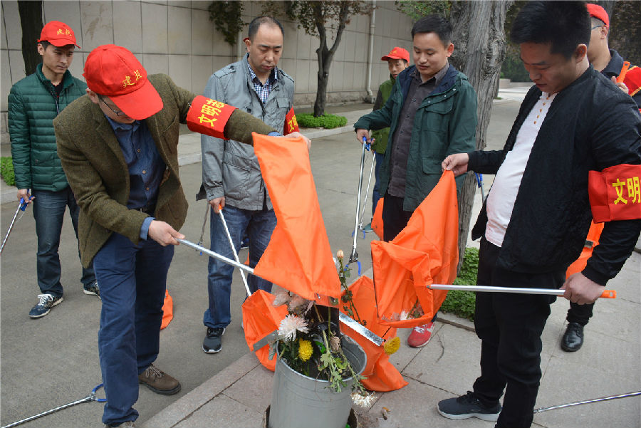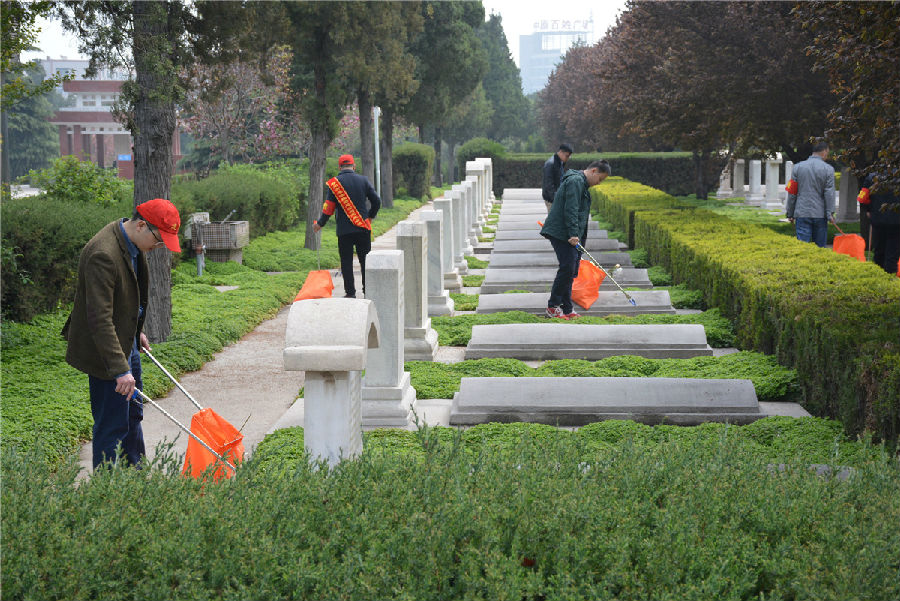 三、開展“倡議文明緬懷,減少廢棄污染”拾撿垃圾志愿服務(wù)活動。緬懷先烈活動結(jié)束后,市建投公司志愿者們在烈士陵園內(nèi)開展“倡議文明緬懷,減少廢棄污染”拾撿垃圾志愿服務(wù)活動。每位志愿者都手持垃圾鉗,認真將散落在紀念碑前以及隱藏在雜草中的廢棄鮮花、飲料瓶、紙張等垃圾拾撿起來放入提前準備好的垃圾袋中。活動持續(xù)一個小時,志愿者們在祭奠先烈的同時以自己的實際行動表達崇敬之情,并倡導以獻一束花、敬一杯酒、植一棵樹、清掃墓碑等方式寄托哀思,將祭拜逝者的傳統(tǒng)習俗以更加環(huán)保、健康、安全、文明的方式表達,營造文明祭祀的良好氛圍。