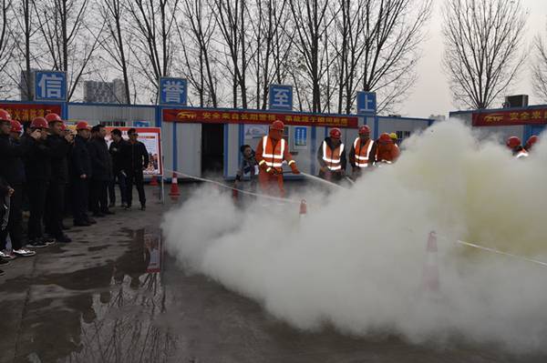 為增強(qiáng)冬季施工安全防范意識(shí),提高妥善應(yīng)對(duì)突發(fā)事故的能力,12月6日,集團(tuán)市政工程建設(shè)管理中心在渠北路二標(biāo)工程現(xiàn)場舉辦了以消防應(yīng)急疏散、逃生、救援及消防器材使用為主要內(nèi)容的消防應(yīng)急演練活動(dòng)。集團(tuán)公司綜合管理部、安全管理部有關(guān)人員及在建項(xiàng)目參建單位100余人觀摩了此次活動(dòng)。